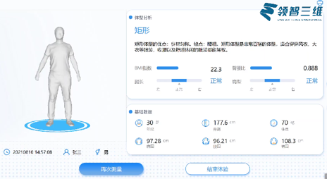 • 陜西領(lǐng)智三維研發(fā)的三維人體掃描系統(tǒng)通過(guò)設(shè)備自帶的多角度3D深度相機(jī)設(shè)備迅速捕捉到投射于人體表面的光感,通過(guò)提取形成圖像,自動(dòng)重構(gòu)出三維圖像上的人體形態(tài)特征,前后僅用時(shí)幾秒鐘,便完成關(guān)鍵三維數(shù)據(jù)采集。