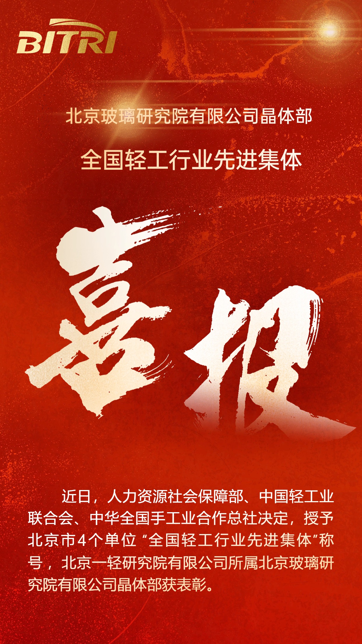 玻璃院晶體部榮獲全國輕工行業(yè)先進(jìn)集體稱號